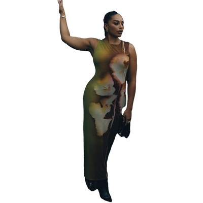 ELOQUII Printed Mesh Dress With Shirring