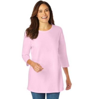 24seven Comfort Apparel Womens Elbow Sleeve Henley Plus Size Tunic Top