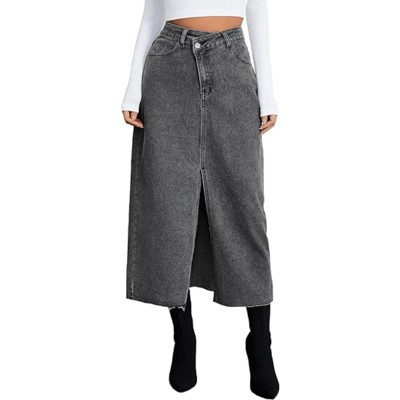 LEVEN SIXTEEN High Waist Split Denim Midi Skirts