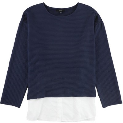 Alfani Womens Layered-Look Colorblocked Pullover Blouse