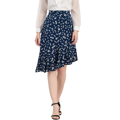 Allegra K Women's Print Elegant High Waist Mermaid Asymmetrical Ruffle Summer Skirt