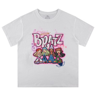 Ladies Original Bratz Dolls Shirt - Yasmin, Cloe, Jade, and Sasha - Bratz 1990's Vintage Throwback Graphic T-Shirt (White Embroidered, X-Large)
