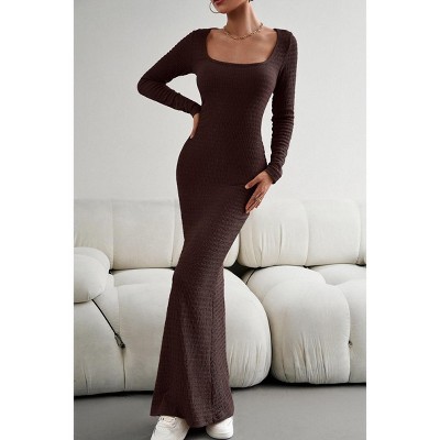 Coolmee Women's Fall Long Sleeve Square Neck Bodycon Maxi Dresses Sexy Ribbed Knit Long Sweater Lounge Dress