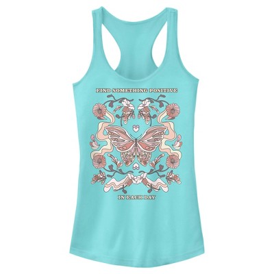 Juniors Womens Lost Gods Positive Day Butterfly Racerback Tank Top