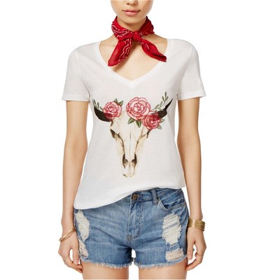 Carbon Copy Womens Rose Graphic-Print Basic T-Shirt