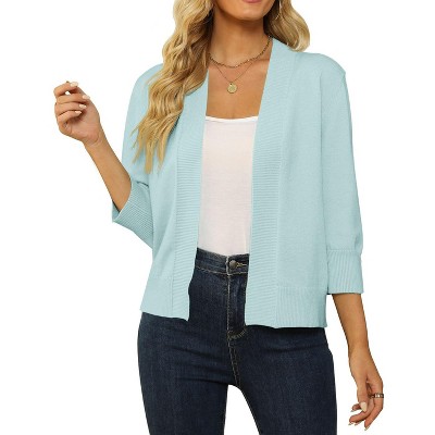 Women's Plus Size 3/4 Sleeve Open Front Ruffle Cropped Bolero Cardigans - Agnes Orinda