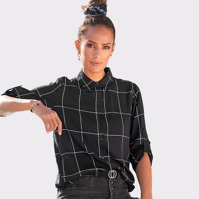 Vintage Plaid Shacket - Women's Short Button Up Long Sleeve Jacket