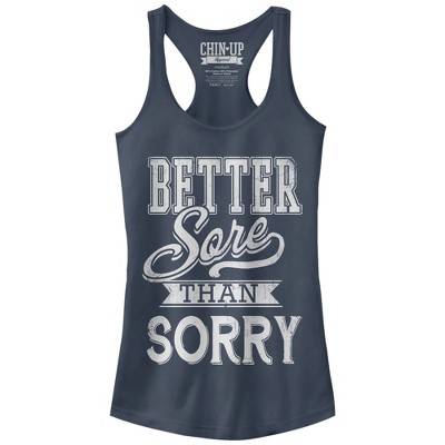 Juniors Womens CHIN UP Sore Not Sorry Racerback Tank Top