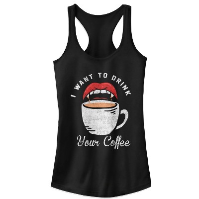 Juniors Womens CHIN UP Halloween Want Your Coffee Racerback Tank Top