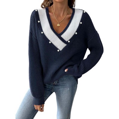 Coolmee Women's V Neck Sweaters Long Sleeve Lightweight Knit Pullover Tops with Decorative Buttons