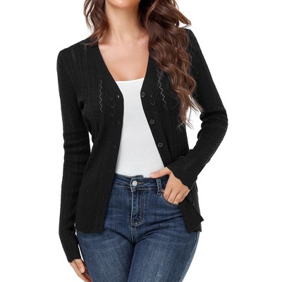 Womens Knit Cardigan V Neck Front Button Lightweight Sweater Cable Knit Hollow Out Cardigan Slim Fit Knitwear Crochet Sweater