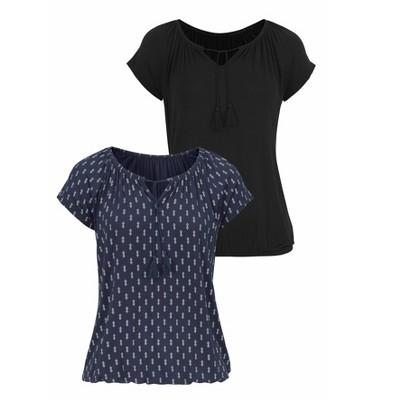 Plus Size Printed Peasant Blouse-White Mark