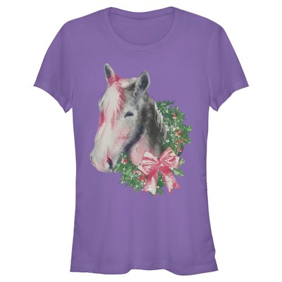 Juniors Womens Lost Gods Christmas Wreath Horse T-Shirt
