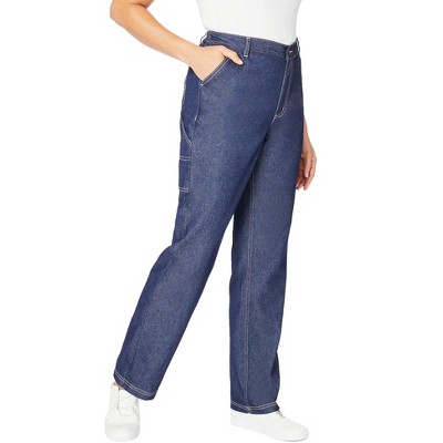 Woman Within Tall Back-Elastic All-Cotton Denim Carpenter Jeans