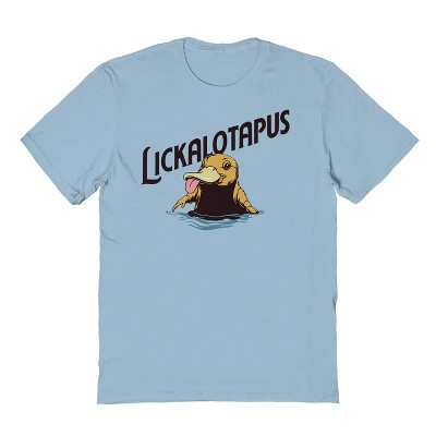 Rerun Island Men's Lickalotapus Short Sleeve Graphic Cotton T-Shirt - Light Blue XXL