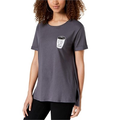 Carbon Copy Womens Cuff Sleeve Graphic T-Shirt