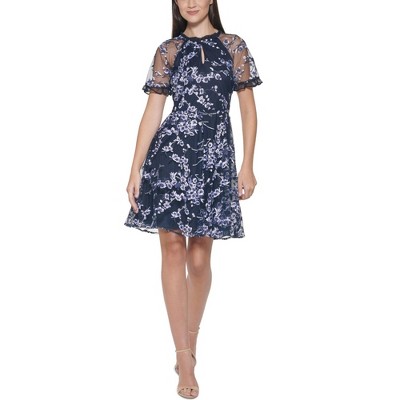 Kensie Womens Floral Embroidered A-line Dress