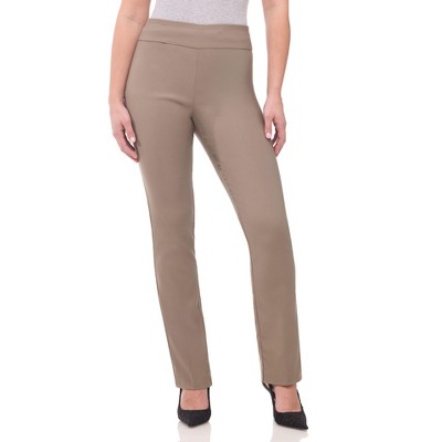 Rekucci Women's Pull-On Straight Leg Pants with Pockets & Tummy Control – Office Workwear Stretch Trousers