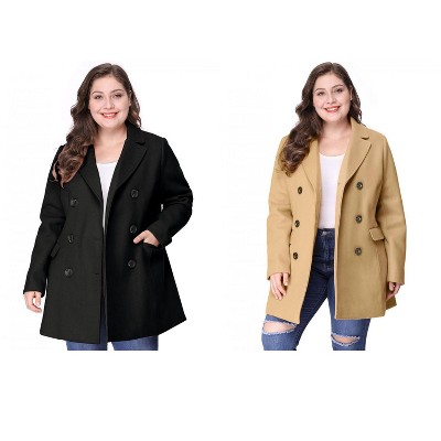 Women's Plus Size 2 Piece Outfits Notched Lapel Double Breasted Winter Dressy Overcoats - Agnes Orinda