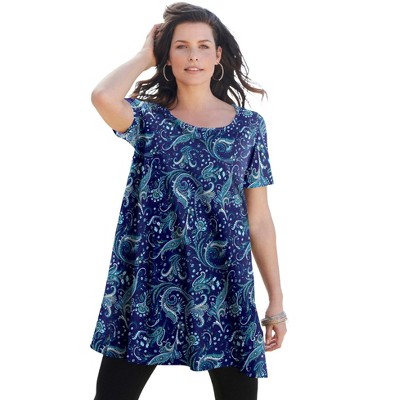 Woman Within Perfect Printed Short-Sleeve Polo Shirt
