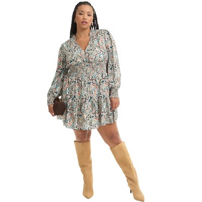 June + Vie by Roaman's Tiered Smocked Midi Dress