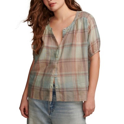 Lucky Brand Womens Ruched Shoulders Peasant Blouse