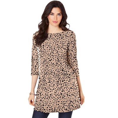 Roaman's Plus Size Cotton Ultimate Boatneck Tunic With Side Slits