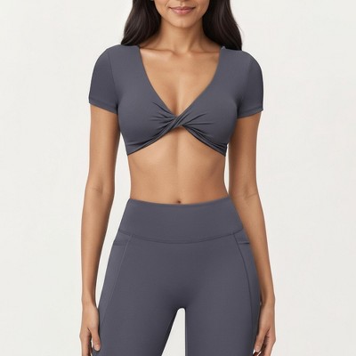 Anna-Kaci Active Women's Short Sleeve Twist Front V-Neck Crop Active Top