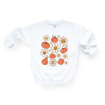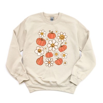 Simply Sage Market Women's Graphic Sweatshirt Distressed Flowers And Pumpkin