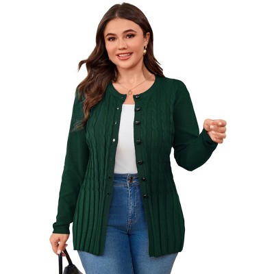Coolmee Women's Plus Size Cardigan Sweaters Button Down Long Sleeve Fall Cardigans Cable Knit Outwear