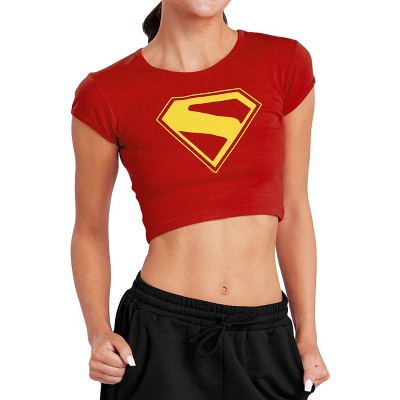 Women's Superman 2025 Gold Shield Cap Sleeve Baby Rib Crop Top