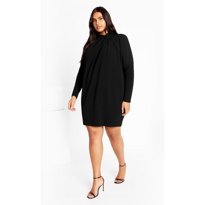 Women's Plus Size Wrap Neck Dress - black | CITY CHIC