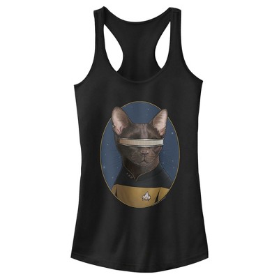Juniors Womens Star Trek: The Next Generation Lieutenant Commander Geordi La Forge Cat Racerback Tank Top