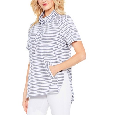 da-sh Women's Cotton Double Gauze Short Sleeve Top Chambray Blue Stripe