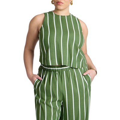 ELOQUII Linen Blend Boxy Scoop Neck Crop Tank