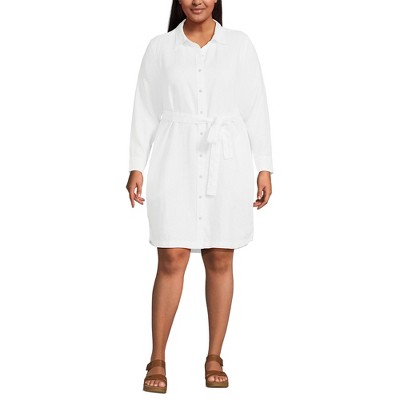Lands' End Women's Linen Long Sleeve Button Front Shirt Dress