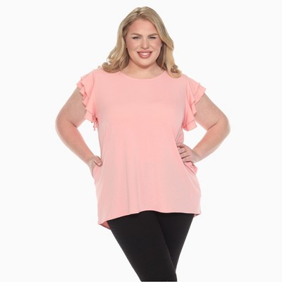 Plus Size Ruffled Sleeve Solid Top - White Mark