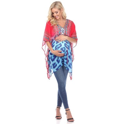 Women's Plus Size Animal Print Caftan with Tie-up Neckline - One Size Fits Most Plus - White Mark