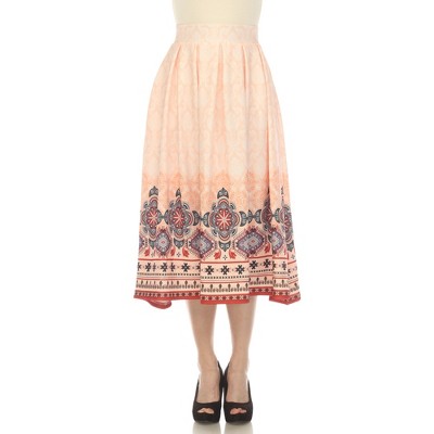 White Mark Women's Leaf Print Vintage Flared Midi Skirt