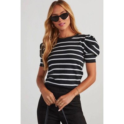 Zilpu Women's Trendy Puff Sleeve Knit Top - Casual Tee Shirt Blouse