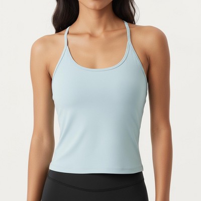 Anna-Kaci Active Women's Fitted Strappy Back Tank Top with Scoop Neck and Cross Back Design