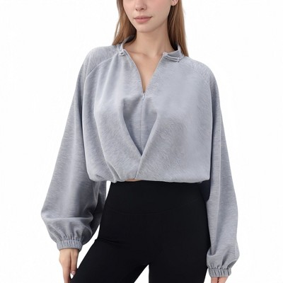 Anna-Kaci Active Women's Long Sleeve Cropped Sports Top with Open Back and Crisscross Strap Detail