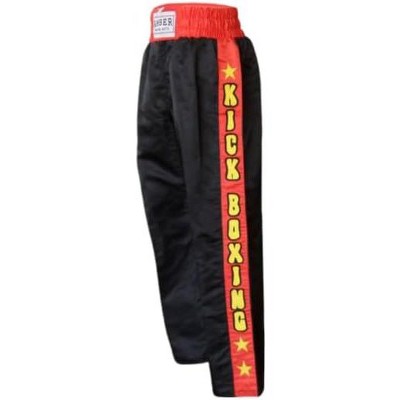 Amber Fight Gear Nylon/Satin Kickboxing Pants Featuring 3" Boxing Style Waistband and Drawstring, and Durability, Black/Red/Yellow, XX-Large
