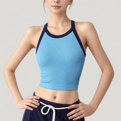 Anna-Kaci Active Women's Ribbed Racerback Cropped Tank Top with Contrast Trim and Fitted Stretch Fabric
