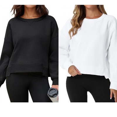 ATHLECHIC Women's Crewneck Fleece Oversized Fashion Fall Outfits Pullover Hoodless Tops Cropped Sweatshirt 2 Packs