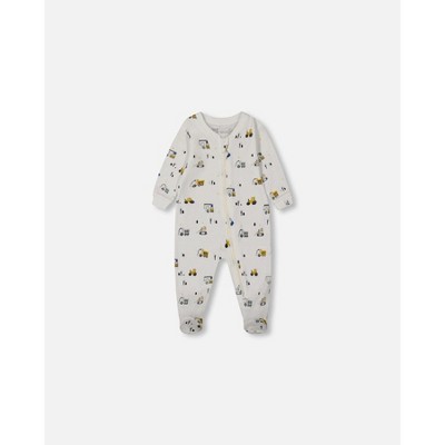 Deux par Deux Boy Printed Organic Cotton One-Piece Pajama Off-White and Multi Truck