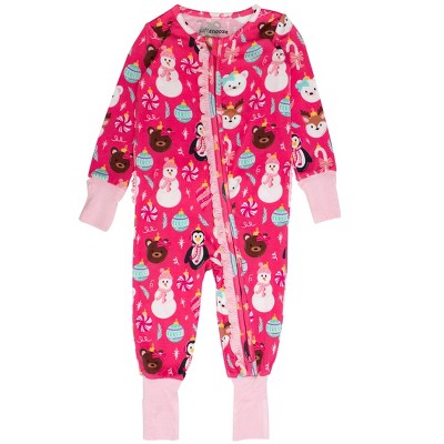 RuffleButts SoftSnooze Baby Girls Holiday Convertible Ruffle One Piece Pajama