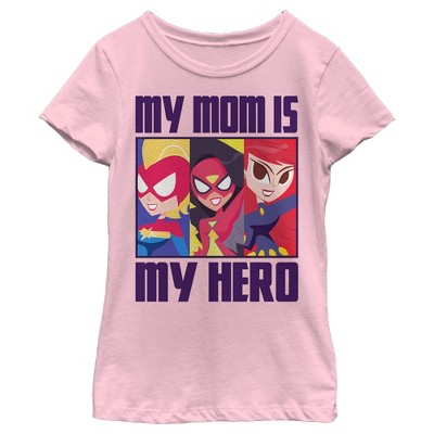 Girl's Marvel My Mom Is My Hero Cartoon Heroes T-Shirt