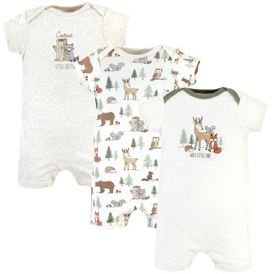 Hudson Baby Infant Boy Cotton Rompers, Forest Animals