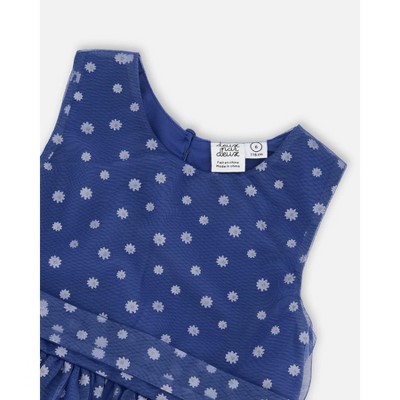 Deux par Deux Girl Printed Tiered Dress Blue with Daisy Print